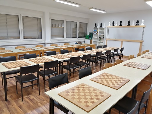 Der Spiel- und Turnierraum hat eine Größe von 63 m2 und befindet sich im 1. Obergeschoss. Ein ca. 20 m2 großer Büroraum im 2. Obergeschoß kann auch als Analyseraum verwendet werden. Die Lage, deutlich näher dem Stadtzentrum und in ca. 5 Minuten Gehdistanz zum Bahnhof Hohenems ist ideal.
