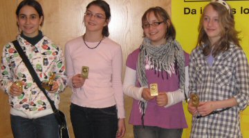 Einen weiteren Klassensieg mit Hohenemser Beteiligung gab es bei den Mädchen der Unterstufe. Aydan Bas (ganz links) qualifizierte sich mit dem Mädchenteam des BG Dornbirn nun auch für das Schulschach-Bundesfinale in Hochkar (NÖ) vom 30. Mai bis 2. Juni.