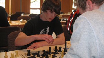 Ebenfalls für das Oberstufenteam des BG Dornbirn kämpfte Ekrem Coskun. Hier bei einer interessanten Partie in der trotz Minusturm zwei weit vorgeschobene Bauern die Entscheidung zu seinen Gunsten brachten.
