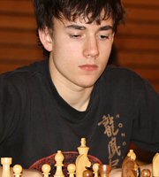 GM Sebastian Bogner (rechtes Bild), 19 Jahre alt, wohnhaft in Neuhausen, Baden-Württemberg war schon 2001 Deutscher Meister U10, später holte er sich auch den deutschen U16 Titel. Mit 14 hatte er bereits den IM Titel, mit 18 im Jahre 2009, holte er sich die dritte GM-Norm und bekam noch im selben Jahr den Titel verliehen. Seine derzeitige ELO-Zahl: 2549. Zuletzt spielte Sebastian in der deutschen Olympiaauswahl. In der deutschen Bundesliga kämpft er für den SV Wattenscheid. Am vergangenen Wochenende gelang ihm eine starke Leiistung. Er remisierte sowohl gegen GM Michael Adams wie auch gegen GM Sergey Tiviakov.