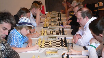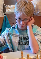 Das Turnier begann für Vincent gleich mit einem Paukenschlag, schlug er doch gleich in Runde 1 Markus Natter, der mit 2110 der klare Favorit war. In Runde 2 behielt er die Oberhand im Bruderduell mit Patrick. In Runde drei traf er dann auf seinen ersten IM, den Deutschen Michael Thorsten Haub (2459). In einer äußerst vorteilhaften Stellung verlor er aber dann doch den Faden und musste sich geschlagen haben. Der überaus sympathische Deutsche IM verriet dann bei der Analyse, dass er zwischendurch von einem Remis nur noch geträumt hat, jedenfalls hatte er ein dickes Lob für Vincent übrig. Diese Niederlage entmutigte Vincent jedoch in keiner Weise, ganz im Gegenteil. Jetzt folgten gegen den Niederländer Martin Meertens (2172) und den Schweizer Thomas Kuhn (2240) weitere sensationelle Siege. Ja, und dann war es soweit, der erste Großmeister in Vincents noch kurzer Schachkarriere saß ihm gegenüber. GM Vladimir Sergeev, der Ukrainer - ELO 2507 - spielte vergangene Saison für Dornbirn in der Westliga, war dann nach Vincents zäher Gegenwehr doch Herr der Lage. Dramatisch verlief dann die nächste Partie gegen den arrivierten Rainer Bezler (2241, Lustenau) Bei sehr unterschiedlichem Material (Dame gegen Turm + 2 Springer mit je zwei verbundenen Freibauern) unterlief ihm in der entscheidenen Abwicklung ein Fingerfehler, der nach wenigen Zügen die Aufgabe erzwang. Bei richtiger Fortsetzung war der Durchmarsch des Freibauern nicht mehr zu verhindern. Nach einer weiteren Niederlage in Runde 8 klappte es dann in Runde 9 gegen den Deutschen Gerd Meier wieder. Alles in allem war das eine Leistungsexplosion, die so nicht zu erwarten war, uns alle aber optimistisch sein lässt für die bevorstehenden Aufgaben beim Unterstufen Bundesfinale und der U14-Staatsmeisterschaft. Seine unglaubliche ELO-Performance von 2175 lag mehr als 400 Punkte über der eigenen Zahl.