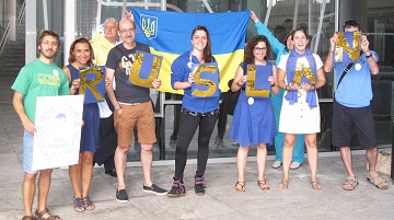 Gestern gab es im Stadion von Athletic Bilbao auch Fußball-Championsleague zu sehen. Milan und Georg ergatterten schon am Montag zwei Karten und wohnten dem Spektakel in der mit 50.000 Zusehern ausverkauften und neu errichteten Arena San Mamés bei. Lediglich der vorreservierte Fanbereich von Schachtar Donetsk blieb fast leer. Nur einige wenige Unentwegte fanden den weiten Weg ins Baskenland um ihren Verein im ersten Championsleague Gruppenspiel der Saison 2014715 zu unterstützen. Wie sollten sie auch, am Flughafen Donetsk wird weiter gekämpft und im August 2014 wurde das Stadion in Donetsk beim Beschuss der Stadt durch Kiev-Truppen beschädigt. Seither besteitet die Mannschaft ihre Heimspiele im westukrainischen Lwiw (Lemberg). Die Menschen in der Ukraine haben derzeit wahrlich andere Sorgen.