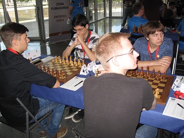 Lucas erste Europacuppartie verlief sehr spannend. Schnell gelang es dem 17-Jährigen die Initiative an sich zu reissen. Im Endspiel mit noch recht viel Material auf dem Brett marschierte dann der schwarze König in die Brettmitte, mitten ins Getümmel. Die Sache ging gut, da sein Gegner die besten Fortsetzungen ausließ. Am Ende wurde Weiss einfach am Brettrand erdrückt. Luca sorgte für den einzigen Schwarzsieg in dieser Auftaktrunde.
