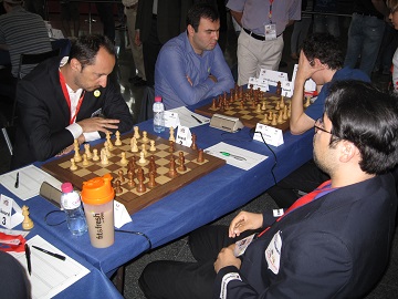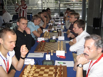 In Runde 4 war das Hauptaugenmerk auf die Paarung SOCAR Azerbaijan, des Turnierfavoriten gegen den Titelverteidiger Novi Bor aus der Tschechischen Republik gerichtet. Tschechiens Nummer 1, David Navara (Bild) verlor dabei recht chancenlos gegen Ex-Weltmeister Veselin Topalov. SOCAR gewann 4-2 und reduzierte damit die Chance auf eine Titelverteidigung für Novi Bor auf ein Minimum. Markus Ragger verlor mit seiner Berliner Verteidigung die zweite Partie hintereinander, heute gegen Gata Kamsky. Leider besiegelte er damit die erste Niederlage seines Teams Solingen.