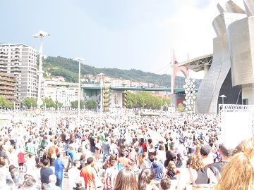 Nein, das waren leider nicht die Zuschauermassen, die zum 30. European Chess Club Cup und zum Mastersfinale strömten. Diese Leute wollten das Red Bull Clipp Diving sehen, das gestern und heute in Bilbao veranstaltet wurde. Um was geht es da? Im wesentlichen stürzen sich einige Verwegene von einer Brücke 27 m in die Tiefe, in den Fluss Ibaizabal.