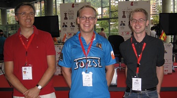Vor Begin der Runde herrschte natürlich noch Zuversicht. Milan und Georg strahlten mit Markus Ragger um die Wette. Markus gelang zum Abschluss noch eine gute Partie gegen Robert Ruck und seine Solinger erzielten den glänzenden fünften Schlussrang.