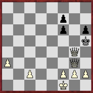 1. e4 e5 2. Sf3 Sc6 3. Sc3 Sf6 4. d4 ed4: 5. Sd4 Lb4 6. Sc6: bc6: 7. Ld3 d5 8. ed5 cd5 9. 0-0 0-0 10. Lg5 h6 11. Sd5: Dd5: 12. Lf6: gf6: 13. Lh7+ Kh7: 14. Dd5: La6 15. De4+ Kg7 16. Db4: Lf1: 17. Kf1: Tab8 18. Dc3 Tbc8 19. Td1 Tb8 20. Td7 Tfc8 21. Dg3+ Kf8 22. Dh4 Kg7 23. Dh5 Tf8 24. Tc7: Tbc8 25. Ta7: Ta8 26. Ta8: Ta8: 27. a3 Tb8 28. b4 Tc8 29. Dg4+ Kf8 30. Dc8:+ Ke7 31. b5 Kd6 32. b6 Ke5 33. b7 Kf4 34. b8D+ Kg5 35. Dg3+ Kh5 36. Dcg4#