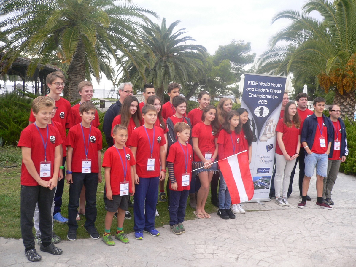 Es ist dies eine Weltmeisterschaft der Superlative. Mehr als 1600 Spieler/innen treten in 12 verschiedenen Klassen (jeweils Open U8/U10/U12/U14/U16/U18 und Girls U8/U10/U12/U14/U16/U18) gegeneinander an und ermitteln in 11 kräfteraubenden Runden die besten Nachwuchsspieler der Welt. Einige wenige Superstars wie der erst 16-jährige Chinese Wei Yi kommen allerdings nicht nach Griechenland. Wei Yi spielt mit seinen 2734 ELO-Punkten bereits in der allgemeinen Weltklasse und nimmt bereits Rang 24 in der aktuellen Weltrangliste ein. Von aktuell 158 FIDE Mitgliesdverbänden sind 91 bei dieses WM vertreten. Viele Entwicklungsländer vor allem afrikanische fehlen, denn die Teilnahme ist auch eine Kostenfrage an der die armen Nationen meist scheitern. Selbstverständlich sind alle großen Schachnationen mit teilweise großen Delegationen vertreten: die USA führen zahlenmäßig mit 129 Teilnehmern das Feld an vor Veranstalter Griechenland (77) und Medailenfavorit Nr.1 Russland mit 73 Teilnehmern. Die USA sind nicht nur zahlenmäßig stark, sondern spielen in verschiedenen Klassen auch um die Medaillen mit. Starke Nationen sind weiters: China, Indien, Türkei, Iran sowie einige europäische Länder. Österreich ist bis auf Mädchen U8 in allen Klassen mit insgesamt 22 Spieler/innen verteten. Mit Luca Kessler (SK Götzis, Klasse U18, Startnummer 25 bei 116 Spielern) ist ein zweiter Vorarlberger mit von der Partie. Chefbetreuer ist IM Siegfried Baumegger.