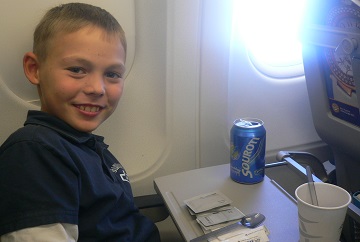 Er hat gerade seine erste Vorbereitung. Auslosung steht: er spielt gegen die Nr 5 des Turniers, Daniel Dardha (ELO 2106 - Jahrgang 2005) aus Belgien. Bild: Benjamin auf dem Flug von Zürich nach Athen.