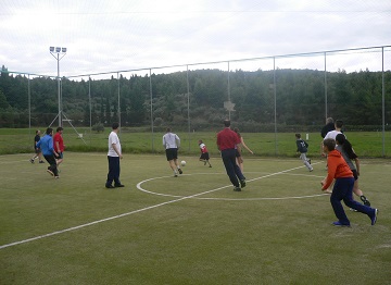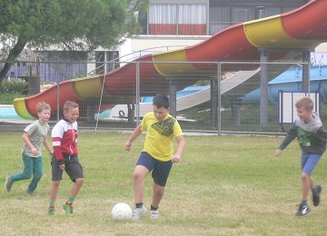 Delegationsleiterin Angelika Blohberger organisierte eine Stunde Tennis spielen auf den nahegelegenen Tennisplätzen. Anschließend gab es ein heißes Fußballturnier mit zwei Jugendmannschaften und einem Betreuer/Begleiterteam. Überraschenderweise konnten die alten Herren der Jugend lange Wiederstand leisten und zwischenzeitlich sogar in Führung gehen. Schlussendlich mussten sie sich jedoch geschlagen geben. Nach einer kurzen Erfrischung im Meer für einige wenige Unerschrockene, ging es ab zum Mittagessen. Am Nachmittag war ein Ausflug ins nahegelegene Dorf Marmaras auf dem Programm. Eine Flussüberquerung musste kreativ gemeistert werden. Zurück fuhren einige mit dem Boot. Benjamin zog es vor gemeinsam mit Leons (U08 Spieler) Familie wieder den Fußweg zu nehmen (siehe Foto). Am Abend wurde gespielt. Schach, Activity, Uno, 4 gewinnt. Eine schöner und ereignisreicher Tag für Benjamin der auch die Gemeinschaft mit den anderen Österreichern sehr gefördert hat.