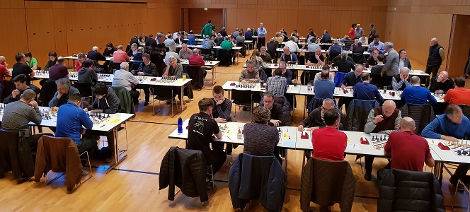 Vier Ligen mit 24 Sechserteams (VBG-Liga und A-Klasse) sowie 27 Vierteams (B-Klassen Oberland und Unterland), somit knapp 250 Spielerinnen und Spieler trafen sich vergangenen Freitag zur gemeinsamen Schlussrunde im KOM Altach. Hohenems 1 mit Captain Guntram Gärtner durfte sich dabei als glänzender Meister präsentieren. Auch die letzte Runde wurde deutlich gewonnen. Fazit: besser geht es nicht: 11 Runden, 22 Match- und 51 von 66 möglichen Brettpunkten.
