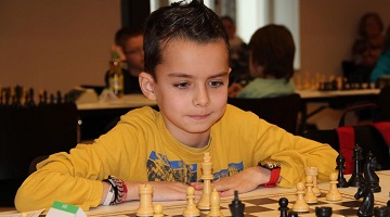 Gespielt wurde in 5 verschiedenen Altersklassen und bei den Jüngsten (U8) stellte Hohenems auch einen Sieger. Benjamin Kienböck (7 Jahre, Bild rechts) spielte sein erstes richtiges Turnier und gewann in einem recht starken Feld von 20 Teilnehmer/innen auf Anhieb. Von sieben Partien gewann er sechs, nur einmal, gegen den Deutschen Brian Gan (am Ende Zweiter) musste er den Punkt teilen. Eine zweite Medaille für Hohenems (die silberne) gewann Alexa Nussbaumer in der Klasse U12. Nach einem etwas unglückliches Auftakt mit einem Patt in gewonnener Stellung steigerte sie sich aber gewaltig, gewann vier Partien und remisierte zwei. Sie musste nur dem überlegenen Sieger Manuel Zebandt vom SV Jedesheim/Deutschland den Vortritt lassen.
