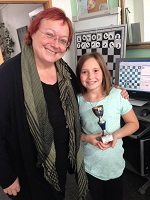Bild: Alexa Nussbaumer mit Pokal für das bestplatzierte Mädchen und Trainerin WIM Helene Mira