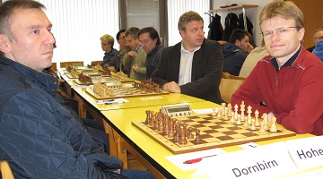 Im Zeichen vieler Absagen und eines veritablen Terminkonflikts mit den Schlussrunden der Schweizer Nationalliga B standen die ersten drei Runden zur der 2. Bundesliga-West in Dornbirn. Betroffen waren allerdings nicht nur wir Hohenemser, Bregenz und Dornbirn konnte ebenfalls nicht aus dem vollen schöpfen. Sieger der lokalen Vorarlbergrunde war daher nicht ganz überraschend die Tiroler "Gast"-Mannschaft aus Rum, die, letzte Saison nur um Haaresbreite dem Abstieg entronnen, diesmal kräftig aufgerüstet haben. Einige neue junge deutsche Gesichter waren da zu sehen, IM Olaf Heinzel rückte gegenüber letzter Saison um einige Sessel weiter zurück.