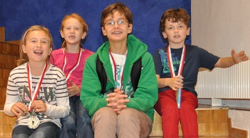 Das Internationale Jugendturnier in Liechtenstein ist traditionell das Auftakt-Turnier zur Vorarlberger Schach-Rallye, einer Turnierserie für Schüler und Jugendliche. Alle haben sich damit ihre ersten Rallyepunkte für die Gesamtwertung geholt. Das nächste Rallyeturnier findet am 12. und 13. Oktober in Bregenz statt. Bild von links nach rechts: Lena und Anja Rumpold, Julian Krnazl und Simon Koller.
