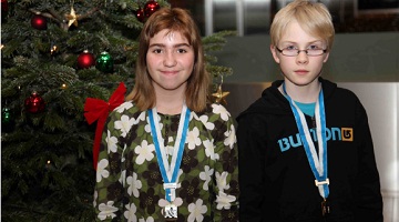 Einen feinen Turniersieg gibt es aus der Schweiz zu vermelden. Emilian Hofer spielte am vergangenen Sonntag das Finalturnier des Züri Supercups 2010 und gewann ungeschlagen vor der in Vorarlberg bestens bekannen Gilda Thode aus Winterthur. In dem 7-rundigen Schnellschachturnier (10 Minuten plus 10 Sekunden pro Zug) besiegte Emilian seine härteste Rivalin gleich zwei mal. Im Turnier selbst und dann noch einmal im Stickkampf um den Turniersieg. Während Emilian bei zwei Remis gegen Stefan Künzi und Poun Piknoreak 5 Partien gewann, musste Gilda Thode nur gegen Emilian die Segel streichen und kam so ebenfalls auf 6 Punkte. Obwohl nach Buchholz und SB klar vorne, musste nach Schweizer Turnierregelement ein Stichkampf gespielt werden. Emilian bestens in Schuss durch diverse Blitzturnierteilnahmen im Land behielt die Ruhe und gewann auch diese Partie. Emilian hatte sich damit als einziger Nicht-Schweizer in der Science City der ETH in der das Jugendschach seinen fixen Platz hat, einmal mehr durchgesetzt. Bild: Emilian Hofer (SK Hohenems) und Gilda Thode (SG Winterthur)