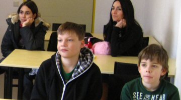 Der Arbeitstag im Klubheim des SK Hohenems beginnt an manchen Samstagen um 9.00 Uhr morgens. Immer dann wenn Nachwuchstraining angesagt ist, lauschen die Zuhörer in zwei Gruppen ganz aufmerksam ihren Trainern. Bei den Kleinsten ist dabei manchmal auch elterliche Unterstützung vonnöten, wie von Maria Nussbaumer (Bild rechts hinten). Nachdem Hohenems für die nächste Saison plant, ein Frauenteam ins Rennen zu schicken, sind Maria und Aydan natürlich besonders interessiert, ihr Schach zu verbessern. Auch Jan Medwed (vorne links) und unser Gast-Schachstudent Maximilian Hofer vom SK Feldkirch (vorne rechts) nehmen regelmäßig an den Trainings teil.